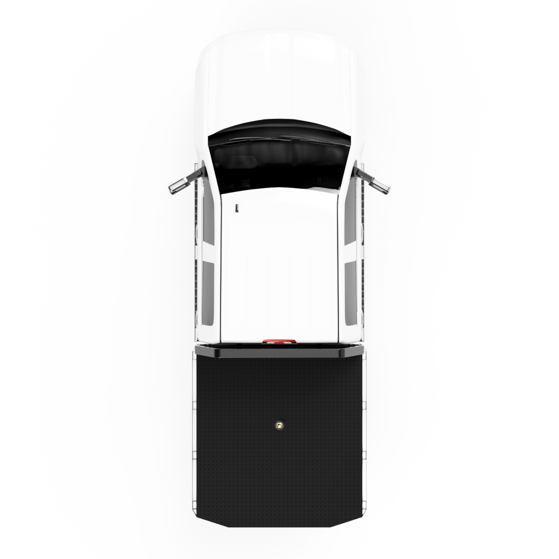 From the back of the cab-forward, this bed is pretty straight forward. It has a 88"L X 80"W deck, rub rails with stake pockets, and a stylish-tapered tail. The factory rear hitch can still be used with this design.