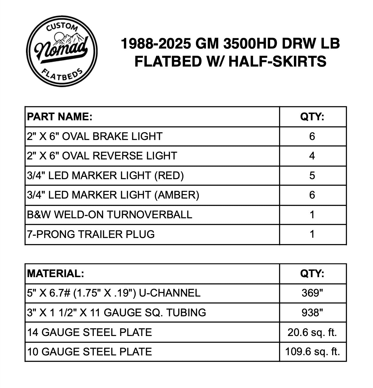 1988-2025 GM 3500 Flatbed W/ Half-Skirts