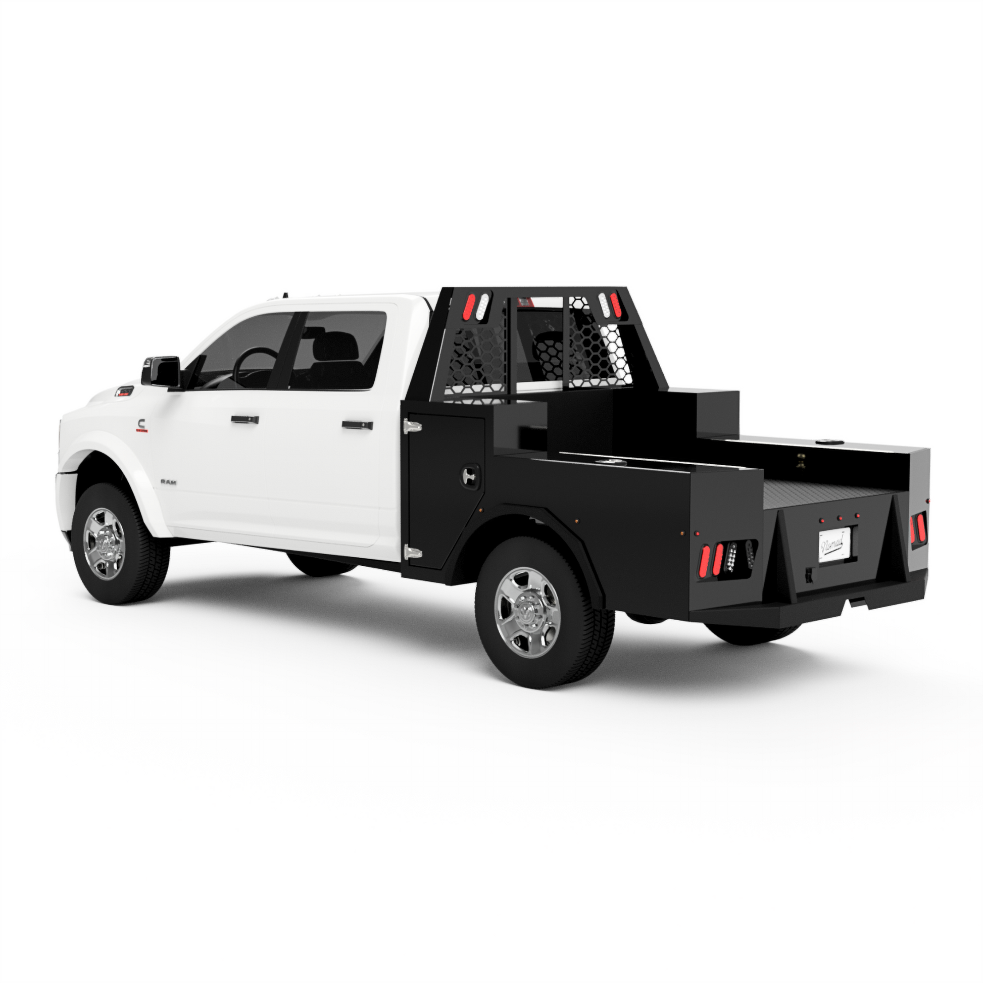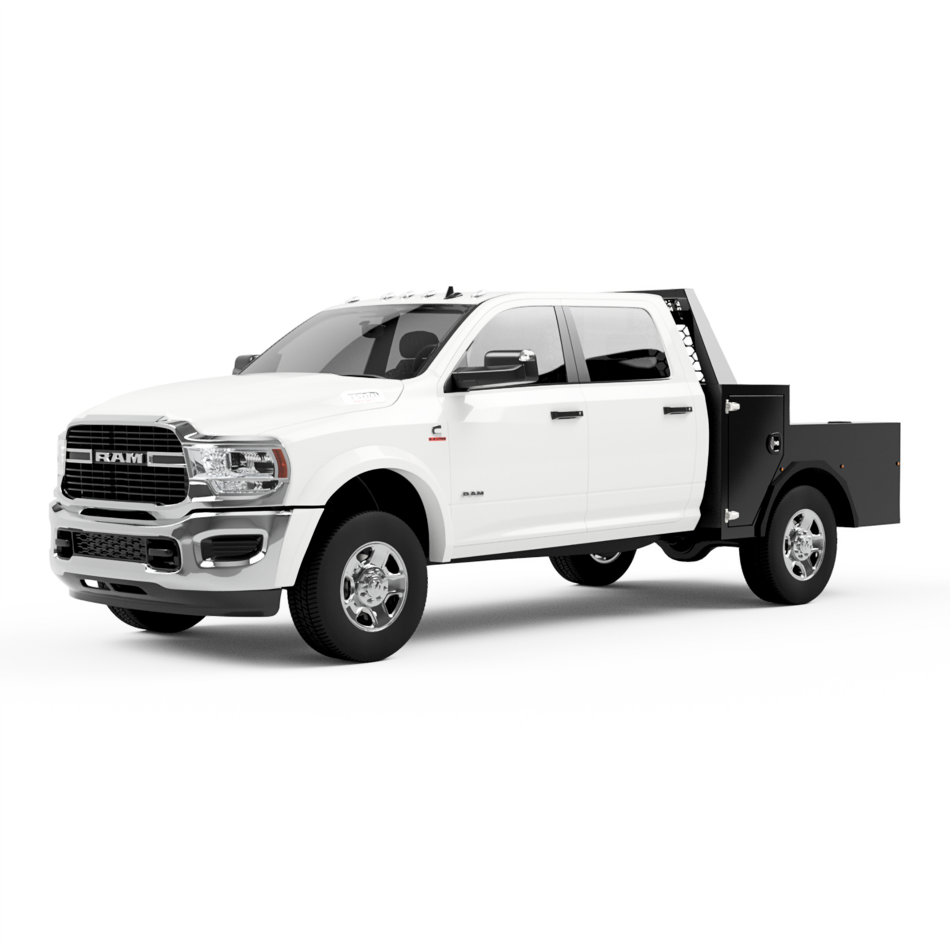 The flatbed shown above is designed to turn any 2003-2025 Ram 2500 or 3500 SRW short-bed pickup into stout and functional work horse. This bed is most notable for it's hybrid-style utility bed build with a sleek tapered tail & headache rack designs. It's primary purpose is to help you maximize the amount of onboard storage capabilities of your pickup while maintaining plenty of usable deck space.